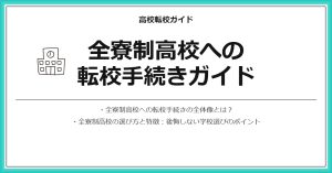 全寮制高校への転校手続きとは、現在通っている高校から別の全寮制高校へ籍を移し、新しい環境で高校生活を再スタートさせるためのプロセス全般を指します。 お子様が学校生活で悩みを抱えている時、全寮制高校への転校は、人間関係や学 […]