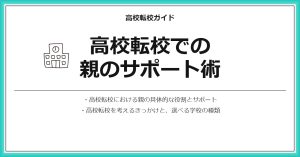 高校転校は、お子さんにとって大きな環境の変化であり、同時に親御さんにとっても深い悩みを伴う決断です。この時期の親の役割とは、お子さんの心に寄り添い、適切な情報収集を通じて最適な選択肢を探し、具体的な行動をサポートすること […]