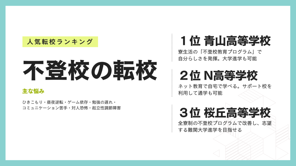 ① 不登校におすすめの高校転校先