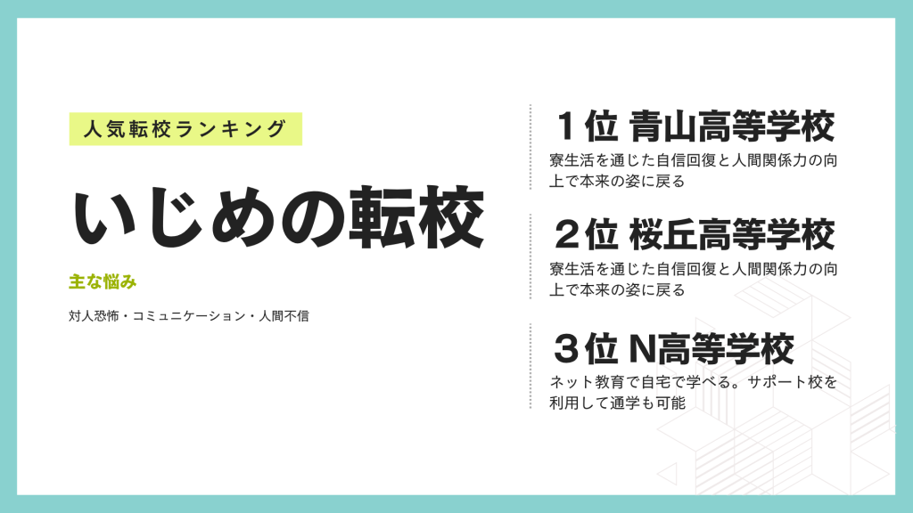 同じ環境にいる限り状況が改善しないケースも多く、高校転校が現実的な選択肢になります。